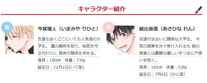 弱みに付けこむ強引な言葉とは裏腹に蓮に触れる今宮の手は優しくて――…。