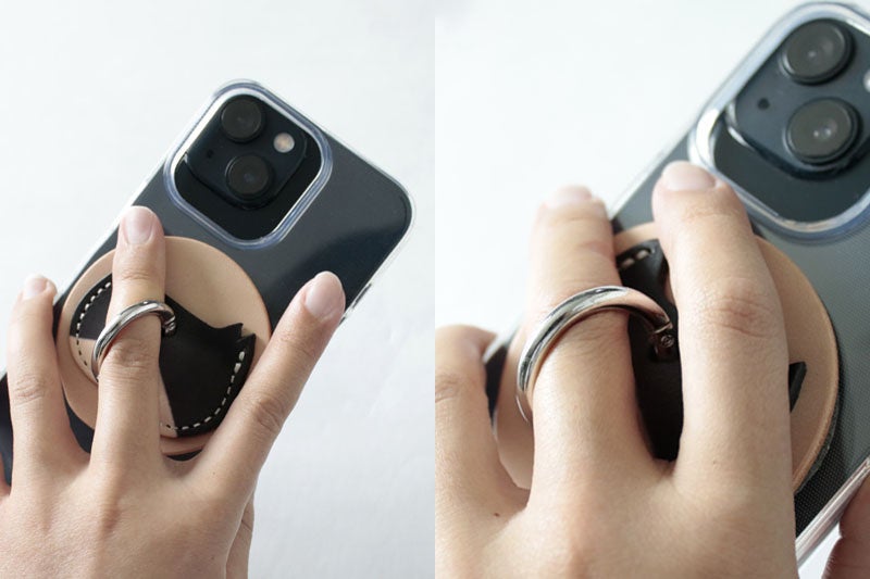 リングに指を通し、落下防止・操作も快適に。