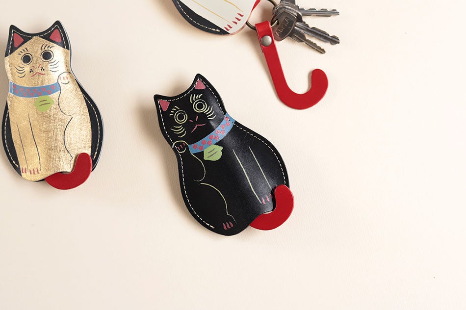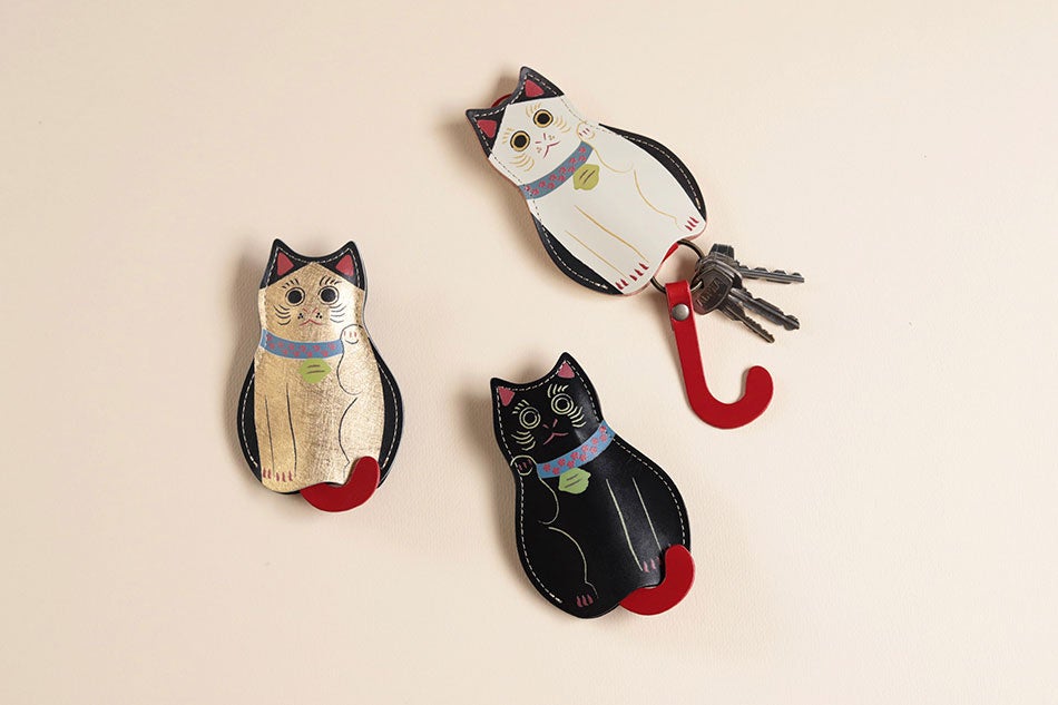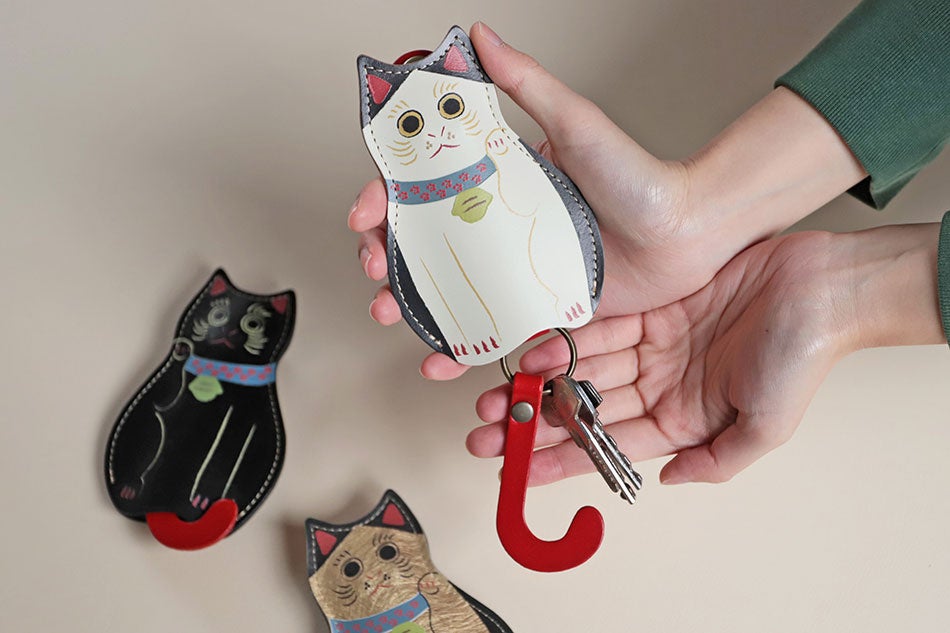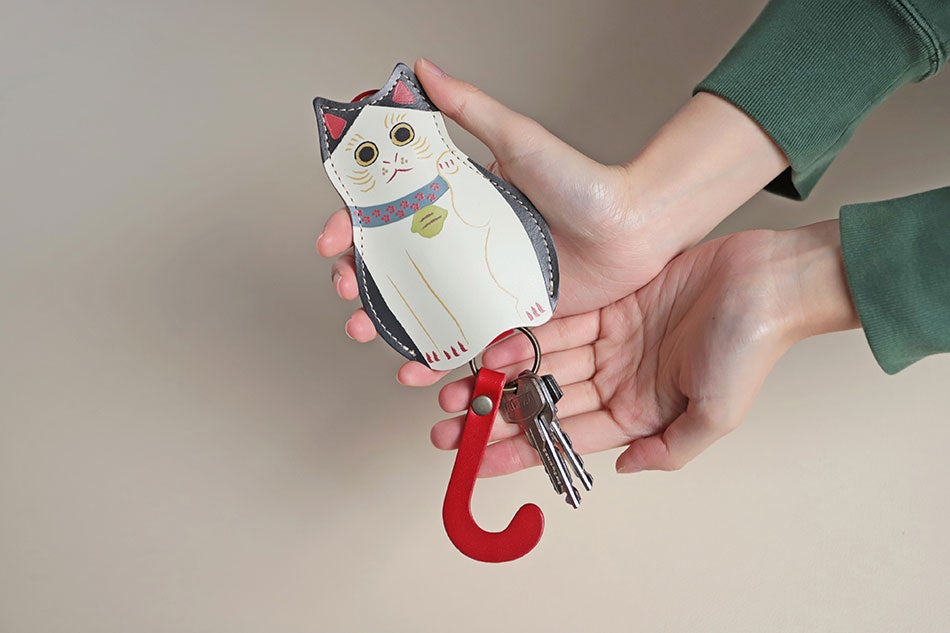 大阪府茨木市で革小物の製作・販売をするクアトロガッツ は、公式HPにて「招き猫のキーケース」を2/14に発売します。価格は5,444円(税込5,988円)