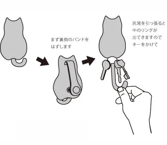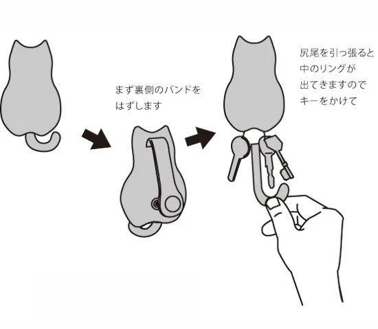 ●しっぽを引くと鍵が出る「猫のかたちのキーケース」