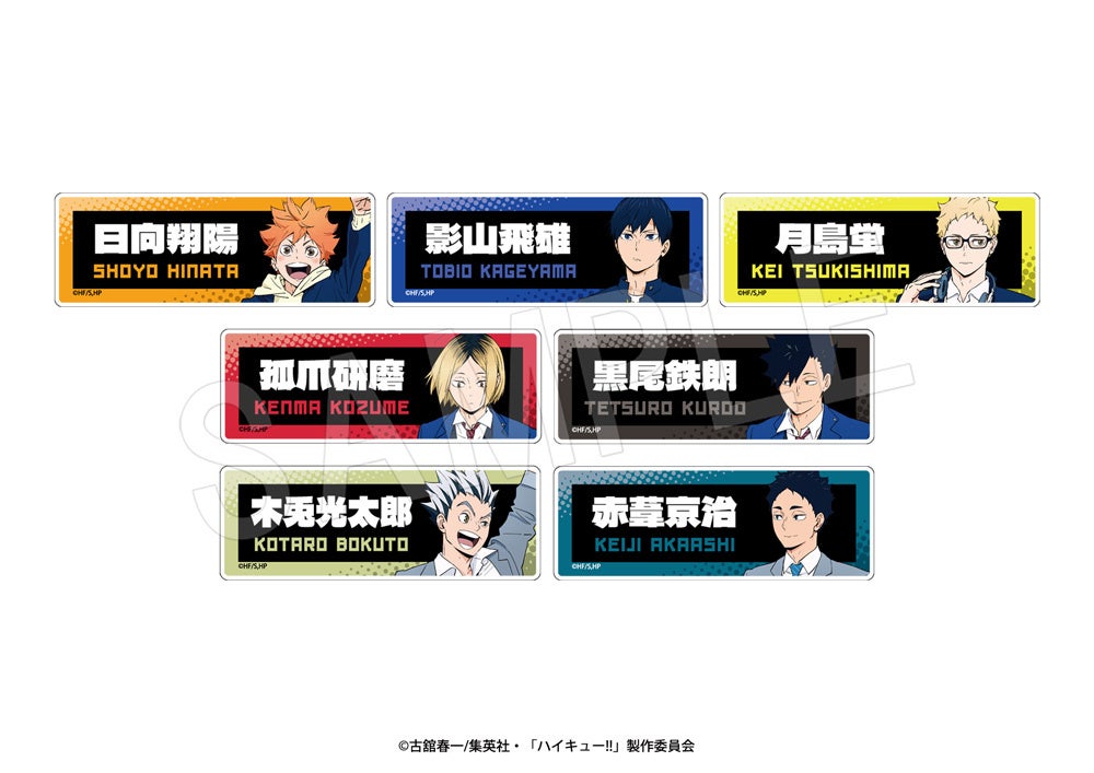 ラインナップ:日向翔陽、影山飛雄、月島 蛍、孤爪研磨、黒尾鉄朗、木兎光太郎、赤葦京治(全7種)