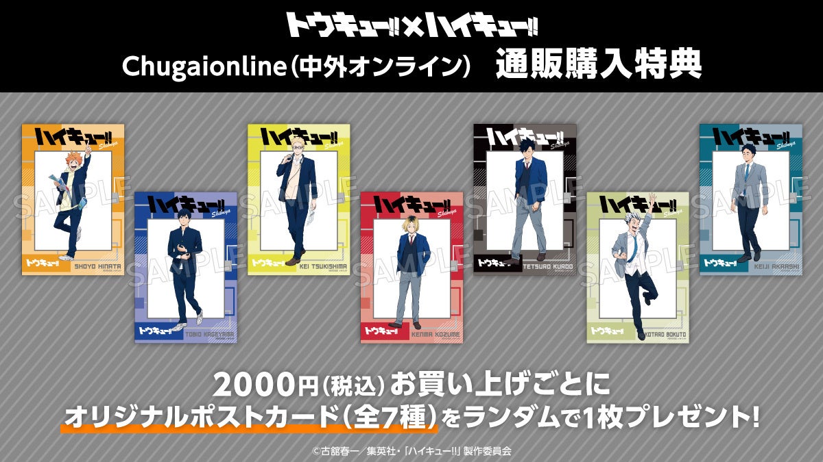 Chugaionline(中外鉱業コンテンツ部ECサイト)にてコラボグッズを2,000円(税込)ご購入毎に、オリジナルポストカード(全7種)をランダムで1枚プレゼントします。