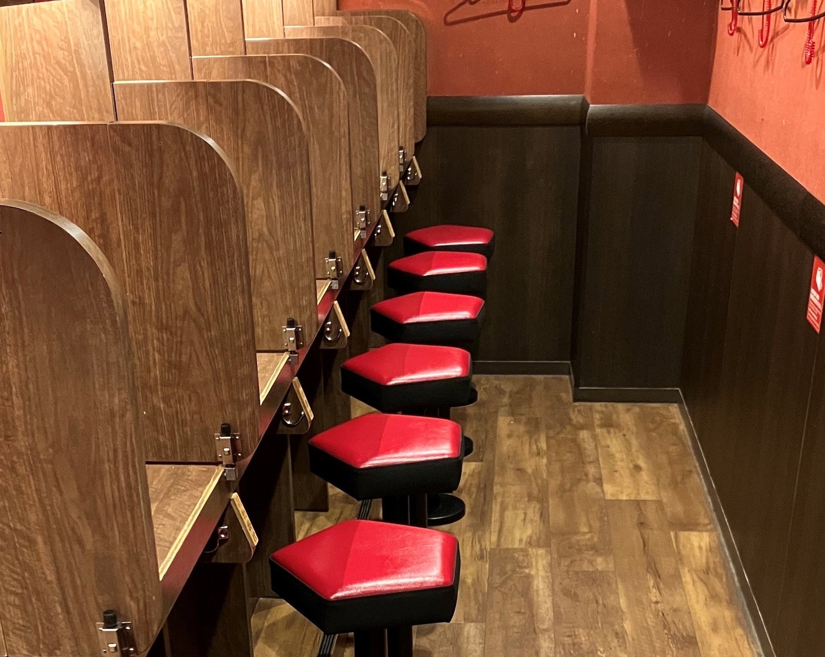 一蘭太宰府参道店の特長は、「合格づくし」の店舗であることです。『合格ラーメン』をご提供しているだけでなく、客席には『合格椅子』や『落ちないハンガー』、背の高い『Tall(トオル)コップ』など、合格にちなんだ装飾が随所に施されています。