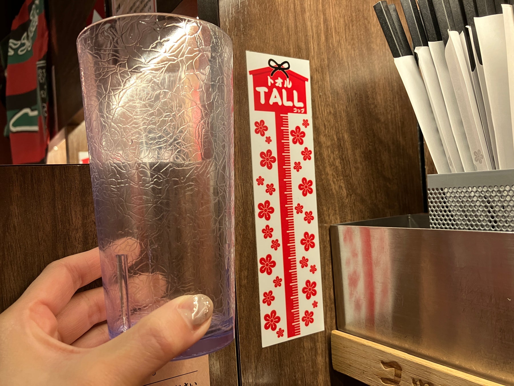 試験に”通る“よう、全席に背の高いTallサイズのコップをご用意しています。